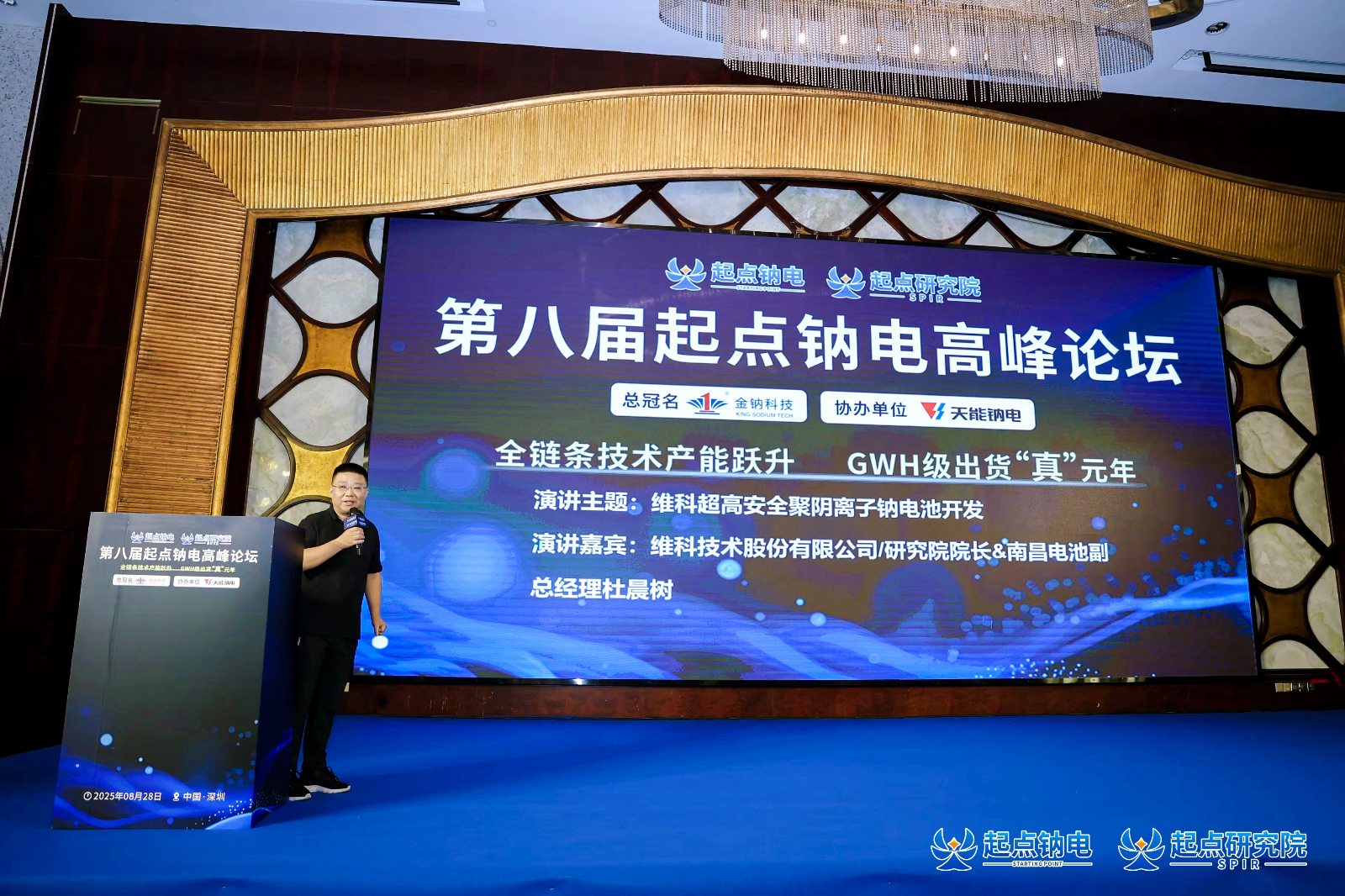 2025 年 8 月 28 日,由起點鈉電主辦的第八屆起點鈉電高峰論壇在深圳市維納斯皇家酒店隆重舉行。本次論壇以“全鏈條技術產能躍升GWH 級出貨‘真’元年”為主題,聚焦鈉電全鏈條技術突破路徑與產業化落地的關鍵方向。維科技術憑借突出的市場表現與技術實力,在此次盛會上一舉斬獲“2025H1中國鈉電池出貨量”與“2025H1中國聚陰離子鈉電池出貨量”兩大榜首并分享核心技術成果。