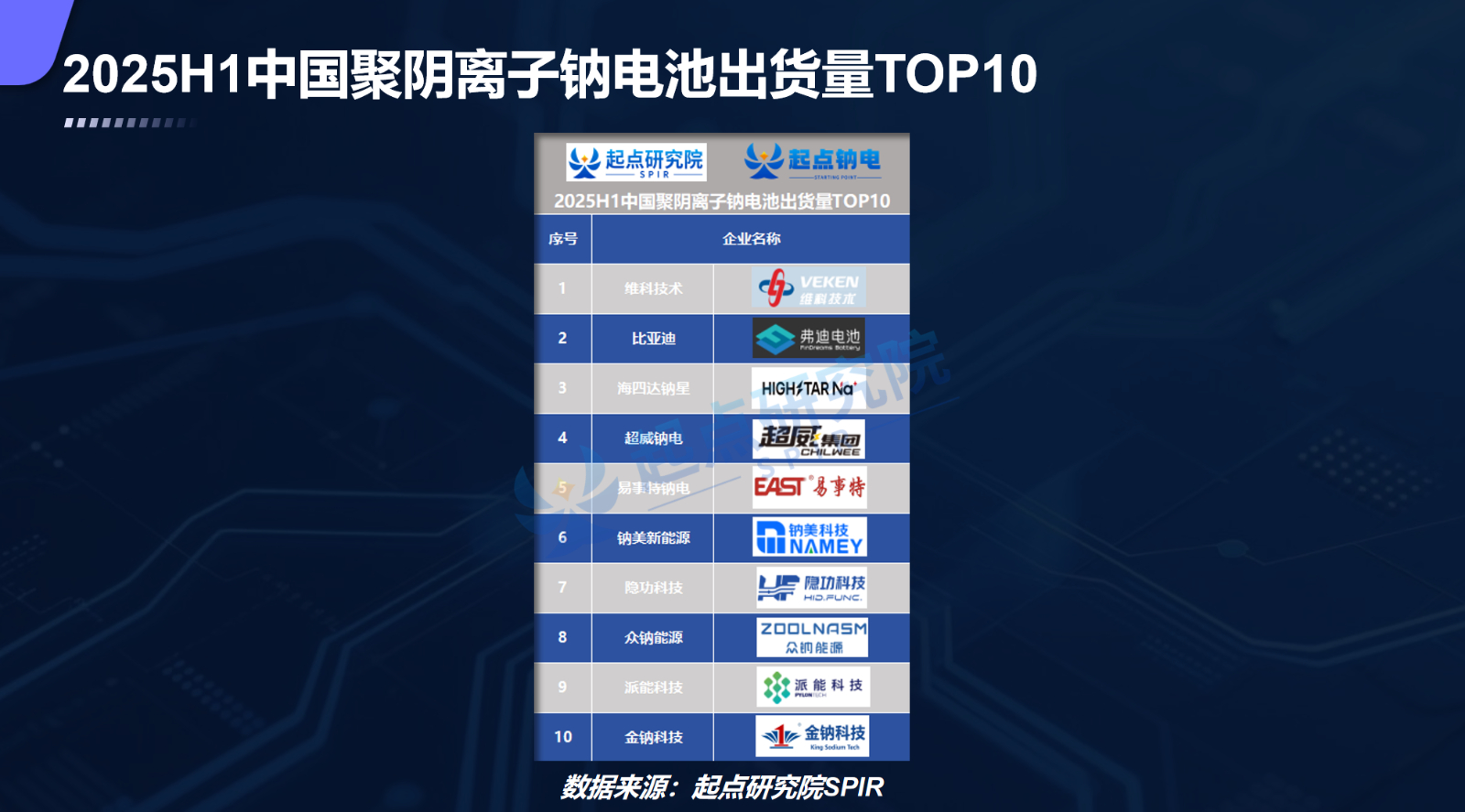大會開幕式環節正式發布《2025H1鈉電池出貨量細分TOP60排行榜》。公司憑借成熟的產業化布局、規模化生產能力及穩定的產品交付表現,在此次發布的榜單中同時斬獲“2025H1中國鈉電池出貨量第一”與“2025H1中國聚陰離子鈉電池出貨量第一”兩項重磅榮譽。這一排名不僅是行業對維科技術鈉電市場競爭力的高度肯定,更彰顯了公司將鈉電技術從研發階段轉化為大規模生產的實力。