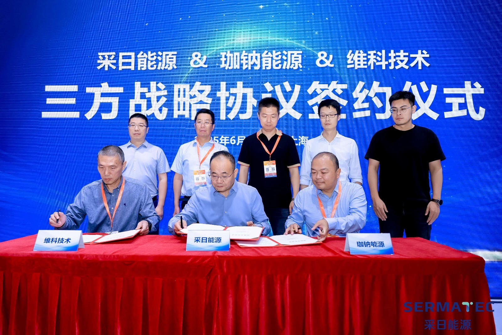近日,維科技術股份有限公司與上海采日能源科技有限公司、深圳珈鈉能源科技有限公司在國家會展中心(上海)SNEC展上簽署《三方戰略合作協議》,宣布在鈉離子電池儲能技術研發、產品推廣及產業鏈協同等領域達成深度合作,共同開啟鈉電儲能產業高質量發展新篇章。